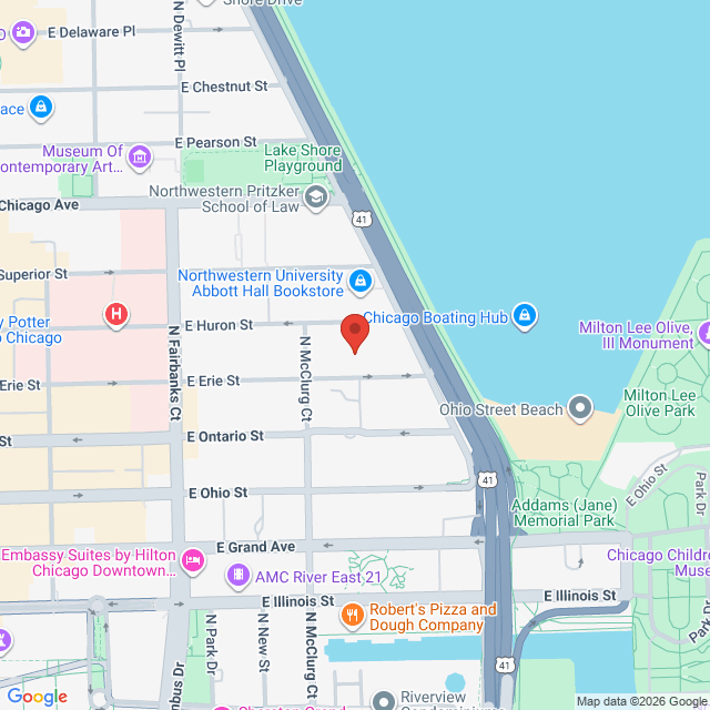 Location accessible to public transportation. Metered Street Parking Available. Parking Garage available inside the building. We can provide validation for $12 parking in garage. Parking Garage entrance at 475 E Huron St and is located on the south side of Huron Street between Lake Shore Drive and McClurg Court.